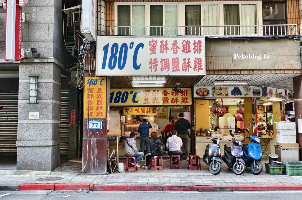 「180度C蜜酥雞排」開業超過20年,就位於萬華的貴陽街上,這裡算是龍山寺跟西門町的中間,離熱鬧的主區都有段距離,但貴陽街美食其實不算少,PEKO分享過的有艋舺阿婆冬粉、永富冰淇淋跟冬仙堂,建議大家可以先點雞排,再去買冬瓜茶或古早味紅茶,或者吃完豬腸冬粉來杯古早味冰淇淋,一次KO兩間萬華美食。