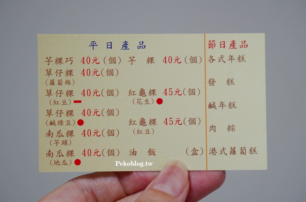 櫃檯後方還有剛出爐正在吹涼的草仔粿、芋粿巧,就是這個不起眼的小東西,讓PEKO一吃就是10多年,常常嘴饞想吃就從板橋專程騎車到新莊來買。