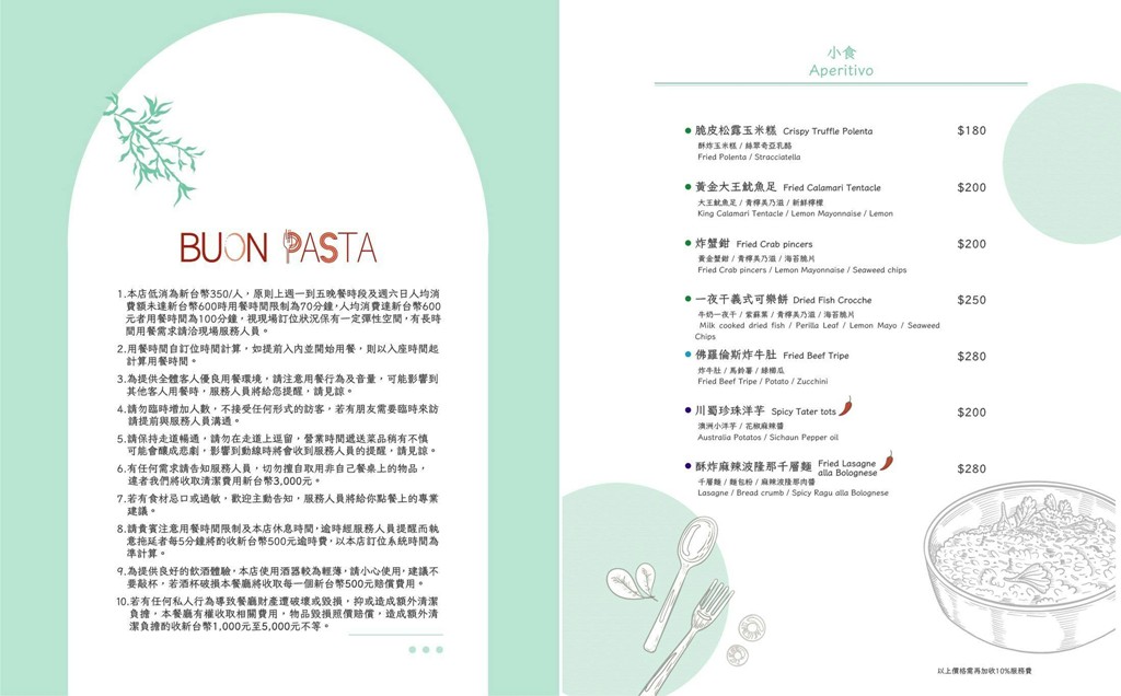 - 店家名稱:Buon Pasta & Bar – 現代義式料理
