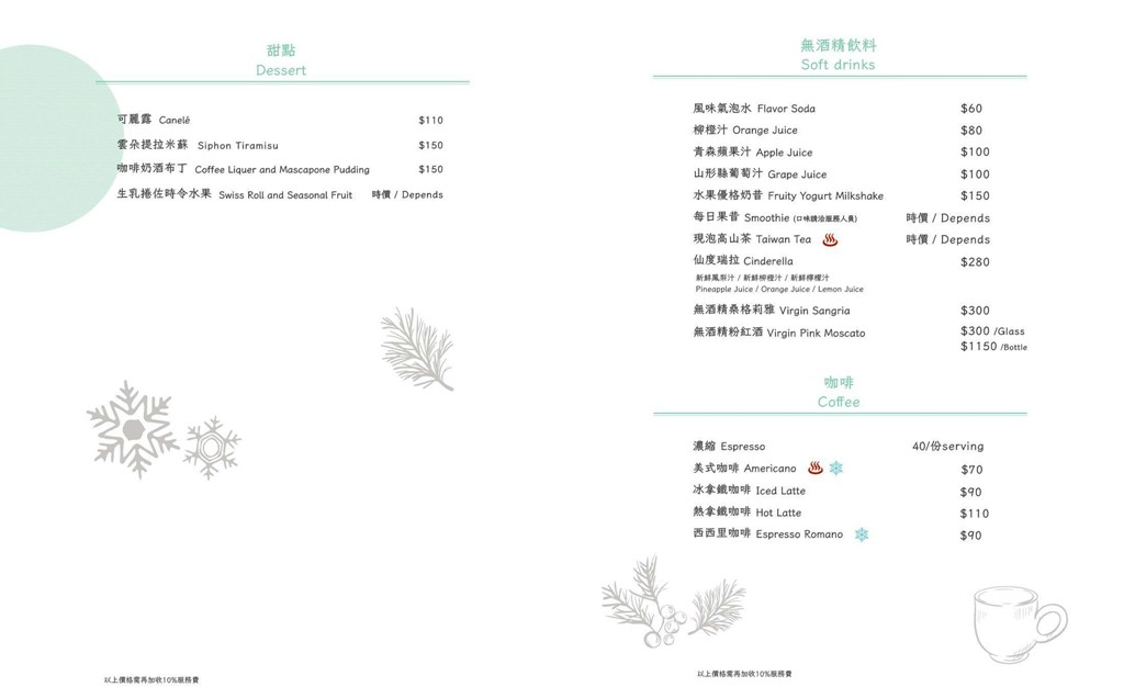 ❚ 酒吧時段不供餐(週五、六提供小食)