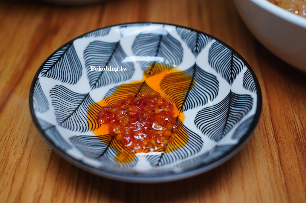 如果你很能吃辣,記得跟店員要辣椒,一開始忘了試辣度,直接整個全掃進麵碗裡,辣的PEKO直接灌了兩杯飲料,辣啊!