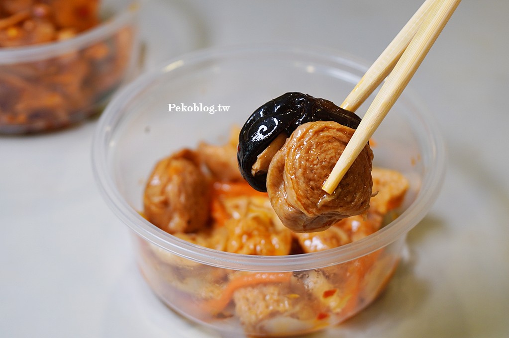 冰箱還有超多款小菜,像是煙燻豆包、豆干絲、海帶絲、紅燒豆皮、脆香雲筍、辣味木耳、麻辣豬耳朵、烤麩嫩筍、芥末杏鮑菇等小菜,種類多到讓人選擇障礙發作,小菜都是相同價位,一律40元。