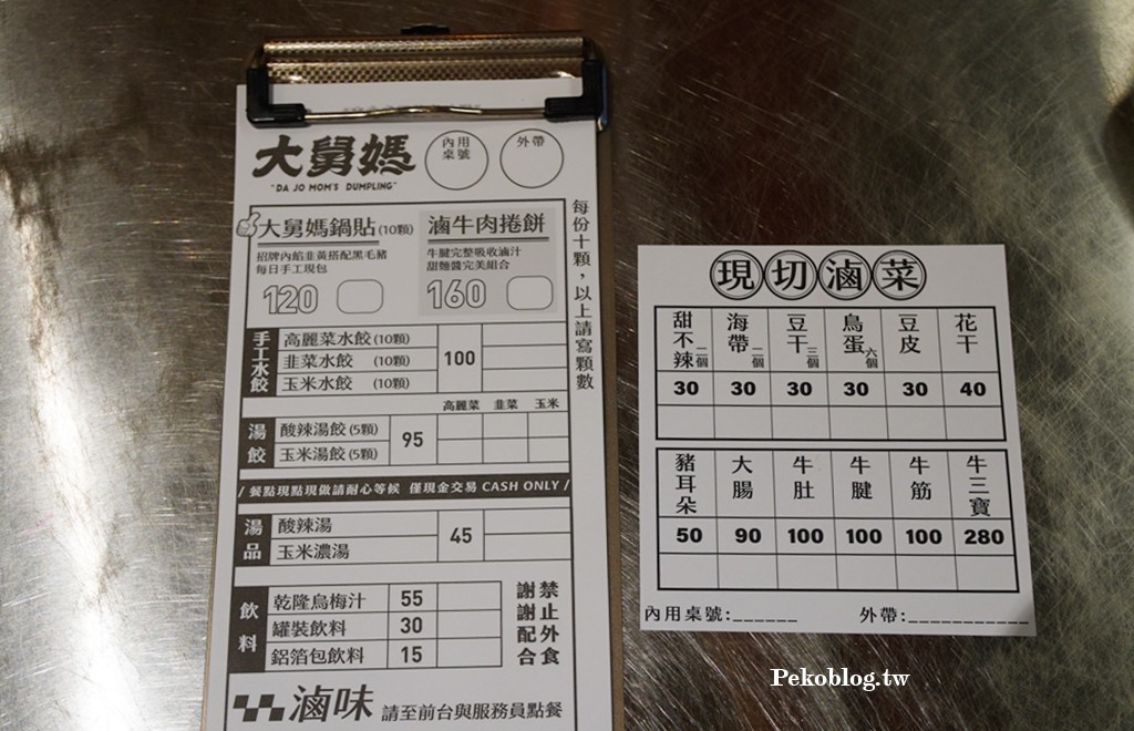 菜單有兩張,主食、湯品、飲料一張,眷村滷味一張,第一次看到有店家這樣分。