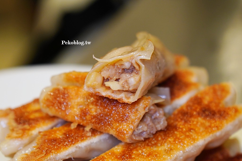 「大舅媽鍋貼」的內餡是少見的韭黃搭配黑毛豬的組合,這配方比例傳承自老闆的大舅媽,鍋貼底部金黃焦脆,韭黃豬肉餡鮮甜可口,不用沾醬就很好吃,熱熱吃超優秀,要不是當天有吃下午茶,PEKO絕對可以一個人吃掉一份。