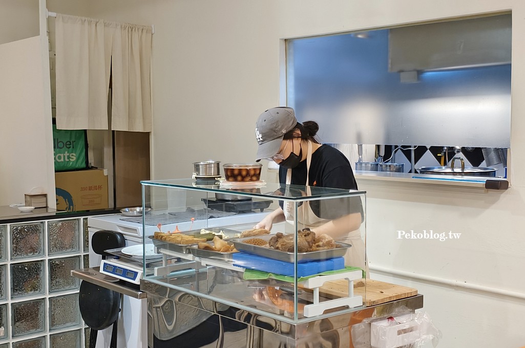 雖然店不大,但現切滷菜有10來種選擇,我們挑了花干、豆皮、牛肚,雖然色澤偏淡,但有入味且不會死鹹,加上生辣椒,超開胃~