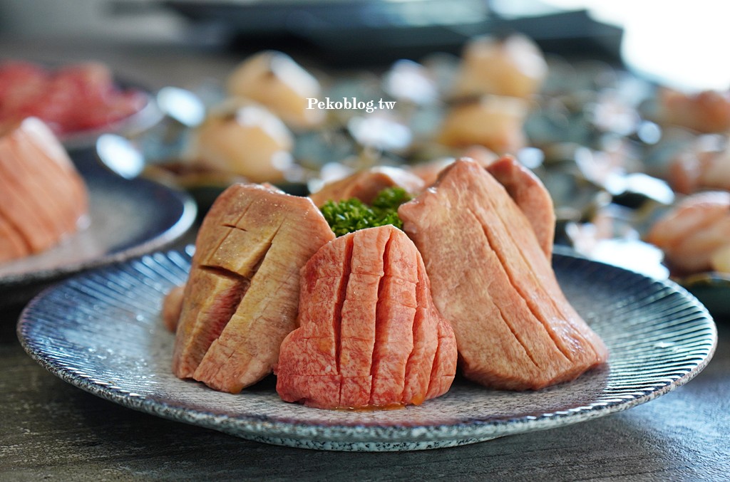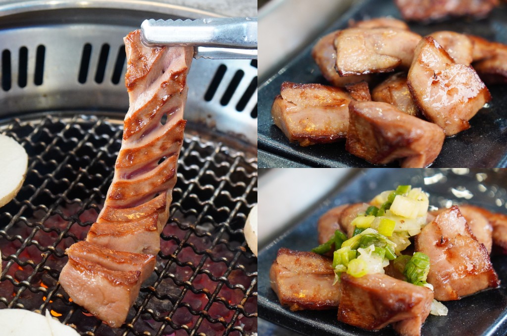 只取舌根約18%部位,刀工細緻、厚切超誠意,炭火一烤油光閃閃,咬下爆汁彈牙,再搭配蔥鹽,牛舌控真的會瘋掉!