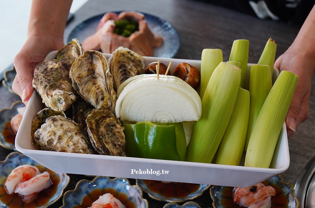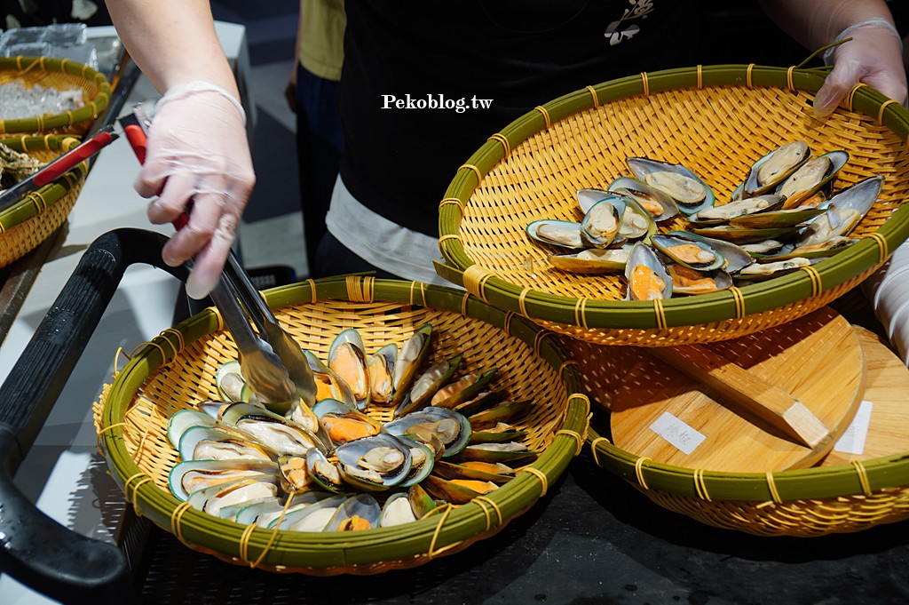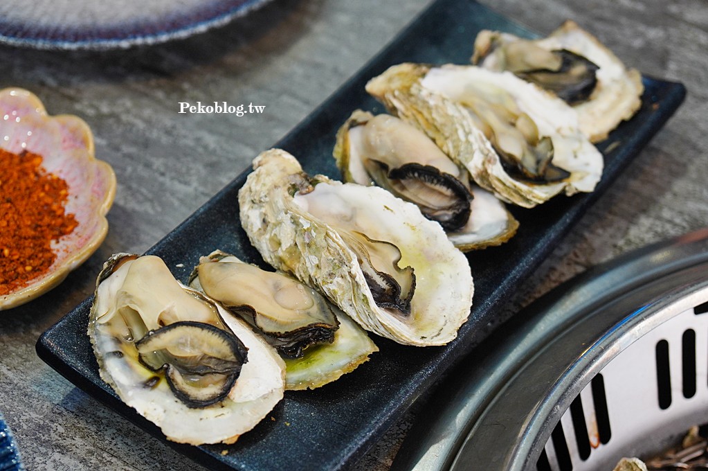 頂級食材吃多了,怕嘴巴被慣壞,想換換口味嗎?《大漠紅頂級燒肉》中間還有一個自助吧,檯面上有澎湖牡蠣、鳳螺、淡菜、魚下巴、絲瓜蛤蠣、帶殼玉米筍、青椒、洋蔥、杏鮑菇。