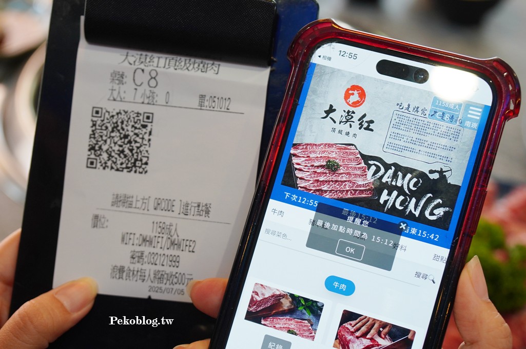 《大漠紅頂級燒肉》主打三種吃到飽價位,都是限時120分鐘,服務費另計10%,身高110公分以下免費、110~140公分半價。