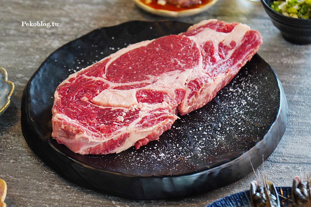 這個算是《大漠紅頂級燒肉》的招牌食材,很多饕客都是衝著它來的,一塊約18oz左右,不過,要點1,158元以上的方案才能品嚐到。100%原塊肋眼牛排,專屬推車隨叫隨到,桌邊現切超新鮮,師傅還會撒上海鹽提味,整個細節控到不行!
