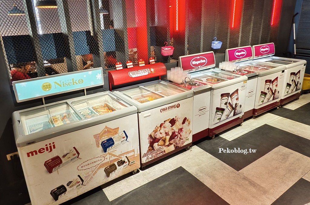 《大漠紅頂級燒肉》的冰品區更是精彩,Cold Stone、Haagen-Dazs冰淇淋、Niseko冰棒通通讓你吃到飽,而且光是Haagen-Dazs冰淇淋就有11種口味,光吃冰就先回本200元,真的深得PEKO的心。