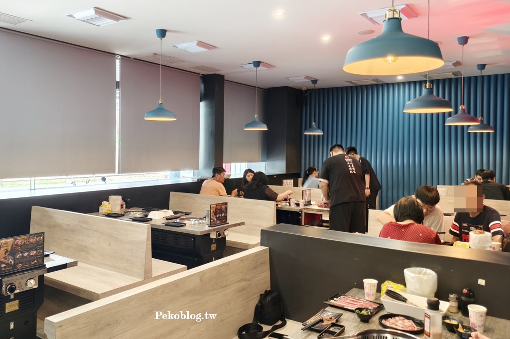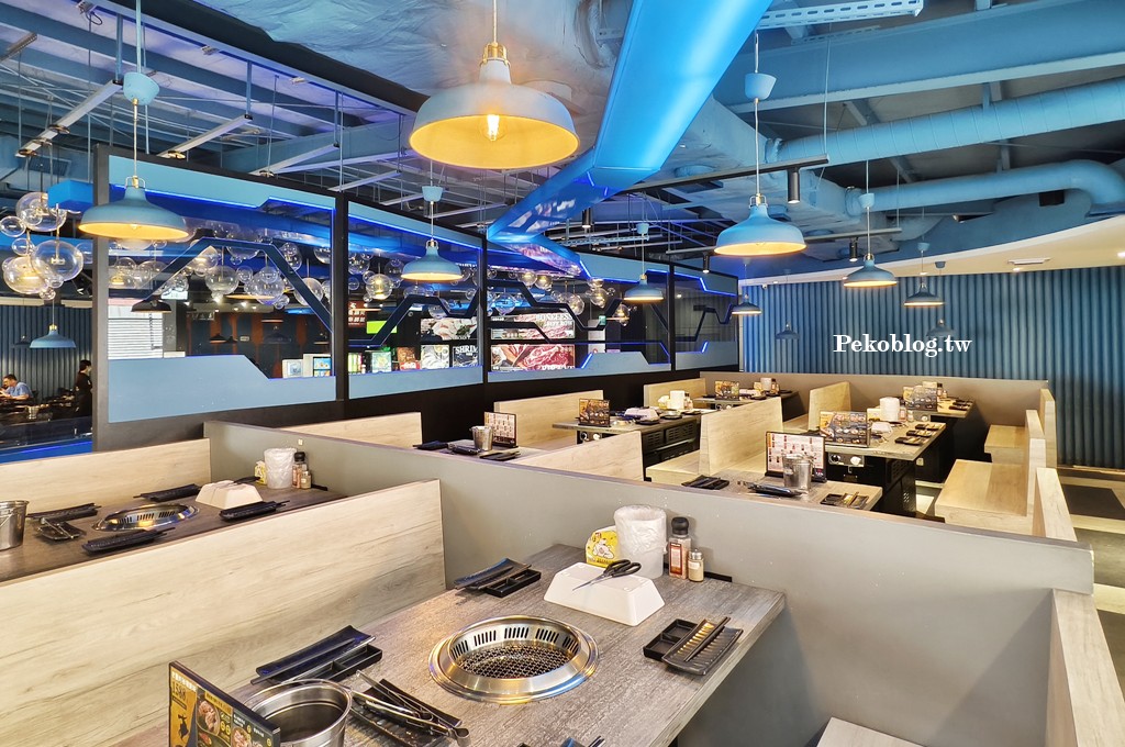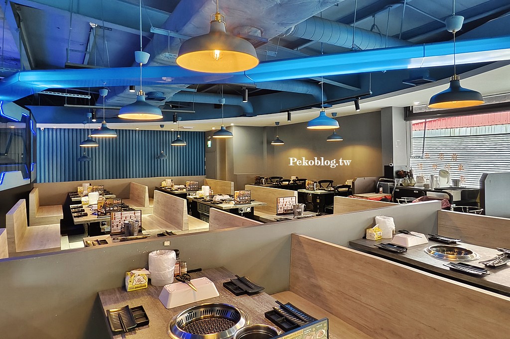 這裡的裝潢跟一般燒肉店完全不同,多了點設計感,空間很大,冷氣很強。用餐空間分成三個區域,座位以4~6人為主,桌距不會太擠,抽風設備也很給力,吃完不會沾滿油煙味,可訂位、可包場,非常適合公司聚餐或家庭聚會。