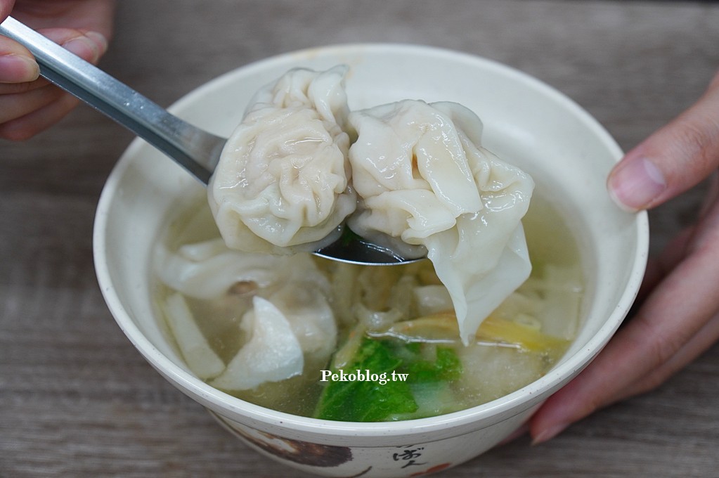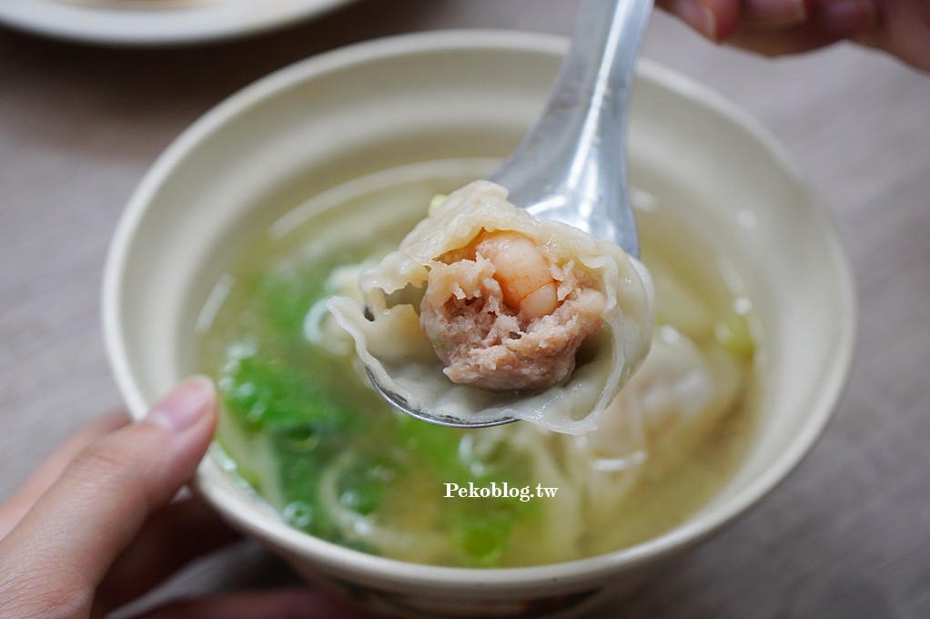 這碗真的是大驚喜!每顆餛飩裡都有一隻完整蝦仁,鮮甜又有彈性,一碗4大顆餛飩,搭配榨菜、小白菜,湯頭也很順口~比起牛肉麵,「水餃飽店」的鮮蝦餛飩湯更深得PEKO的心!