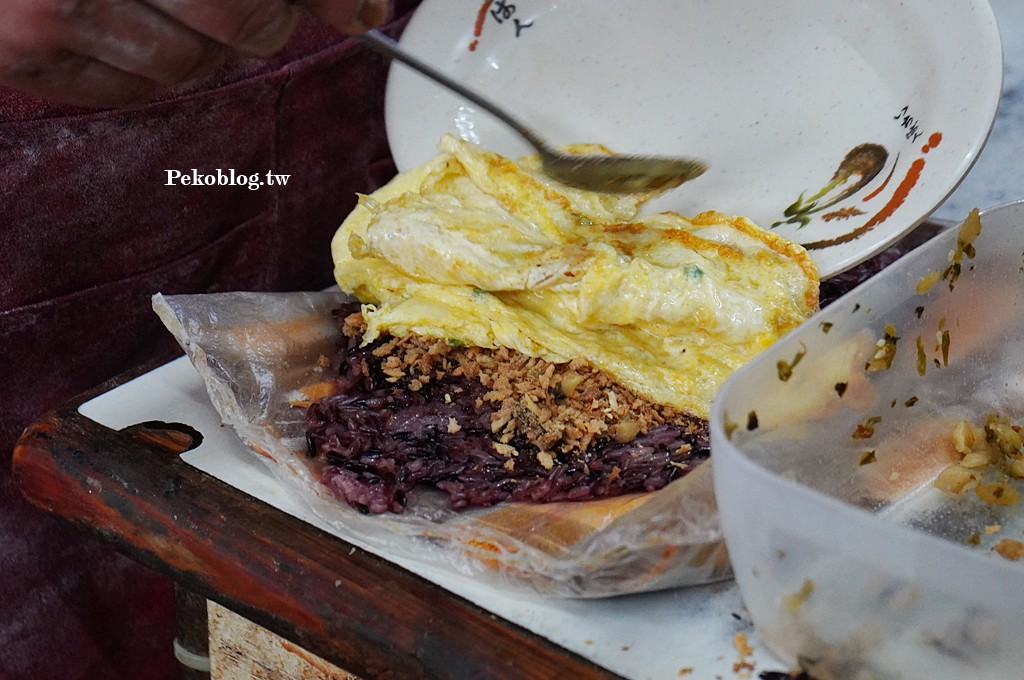 一般中式早餐店的飯糰都是糯米飯糰,第一次看到賣紫米飯糰的,「新鮮豆漿店」的紫米飯糰個頭不算小,裡面會有菜脯、酸菜、肉鬆以及油條,很可惜沒有辣菜脯,不然一定更加分,紫米軟硬適中,嚼起來很香,吃了也不會脹氣。