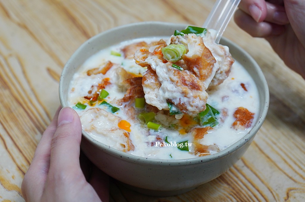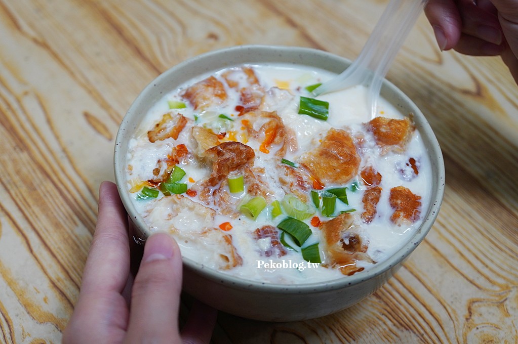 每次吃中式早餐只要身旁有陳小妹,絕對會有一碗鹹豆漿,「新鮮豆漿店」的鹹豆漿才30元,還蠻大一碗的,鹹中帶有一絲酸味,豆花細緻,整體味道是比較爽口的,還可以添加辣油。