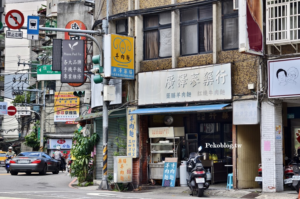 「廣澤藥膳羊肉麵」是一間位在中和忠孝街的老字號中藥行麵店,靠近捷運南勢角站,從4號出口走過來大概7分鐘,地點剛好在忠孝街轉進信義街的轉角處,招牌上寫著「廣澤蔘藥行」,第一次來真的很容易錯過。