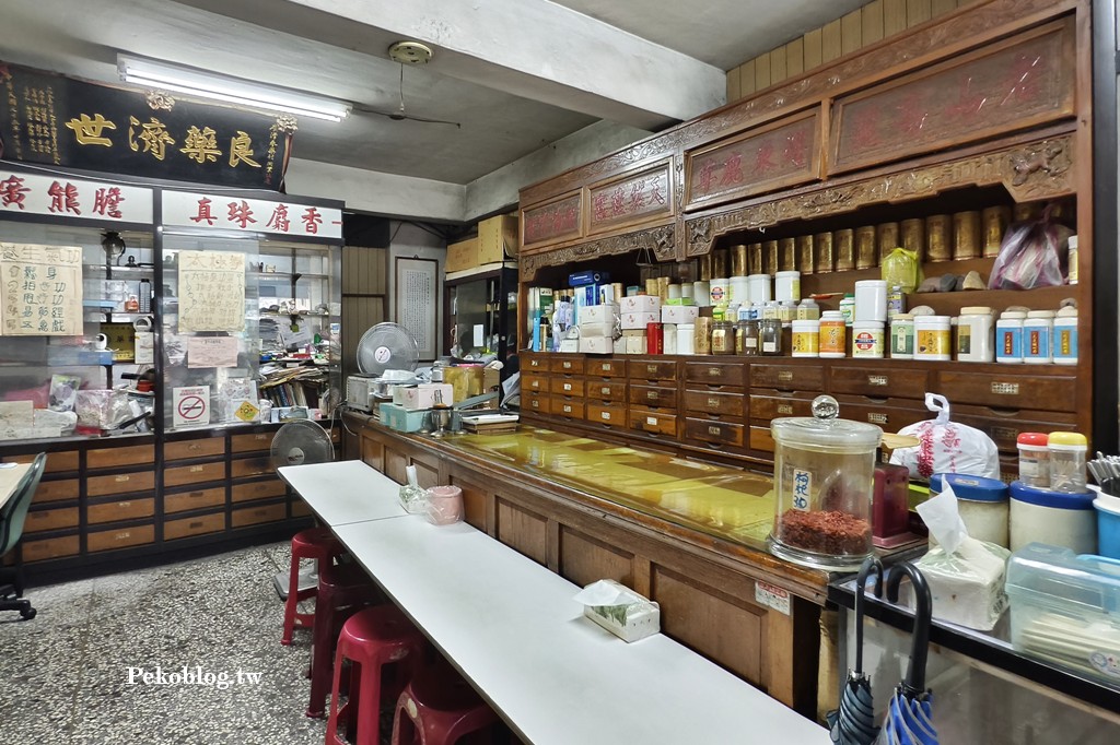 講真的,第一次踏進去真的會有點錯亂,整間店就是傳統中藥行的模樣,中藥櫃、抓藥區都在,沒錯,就是那種抓四物、八珍、煎補湯的地方!只不過放上桌椅,這成了吃麵的地方,完全是藥房x麵店的複合式空間,斜槓精神爆棚~
