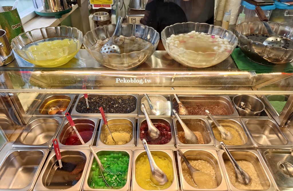 小時候麵茶都是喝熱的,長大後才知道原來麵茶也能吃冰的,而且味道還這麼優,炒過的麵茶粉香氣在口中慢慢散開,搭配上紅豆、仙草和芋圓,有點甜又不會太甜,扮演好各自的角色,沒有誰搶了誰的風采,完全征服PEKO挑剔的味蕾。
