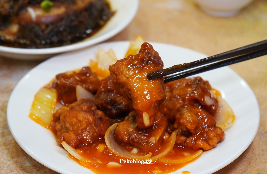 醬色紅潤油亮,光看就超誘人,帶骨排骨肉裹上酸甜的糖醋醬汁,滋味濃郁不膩口,絕對是老少咸宜的一道佳餚!