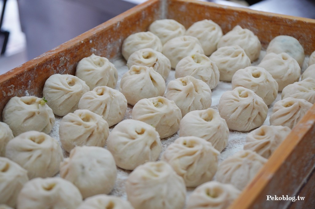 水煎包、小籠包都是當天現包現煎現蒸的,一個攤位,竟然有四位工作人員在包餡料,而且手都沒停過,可想而知生意有多好。