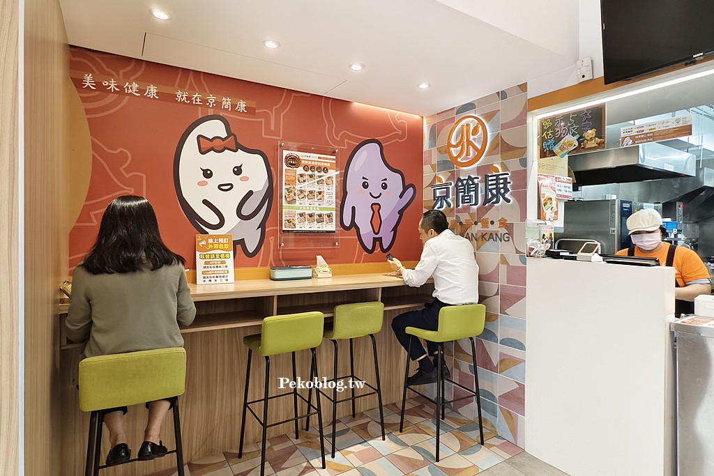 雖然有內用座位,但不同於「鬍鬚張」的規模型態,「京簡康」空間不大,內用區僅8個座位,主打外帶外送。
