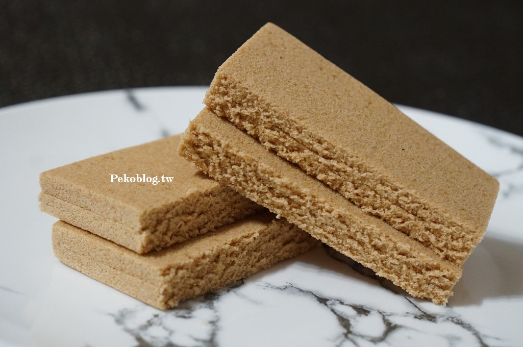 不同於常見方形厚重的鳳梨酥,「老順香餅店」的金牌鳳梨酥是經由木模手工壓製而成的扁平形狀,薄皮、餡多,內餡使用金鑽鳳梨,不摻冬瓜餡,吃得到鳳梨纖維,甜而不膩、不黏牙。