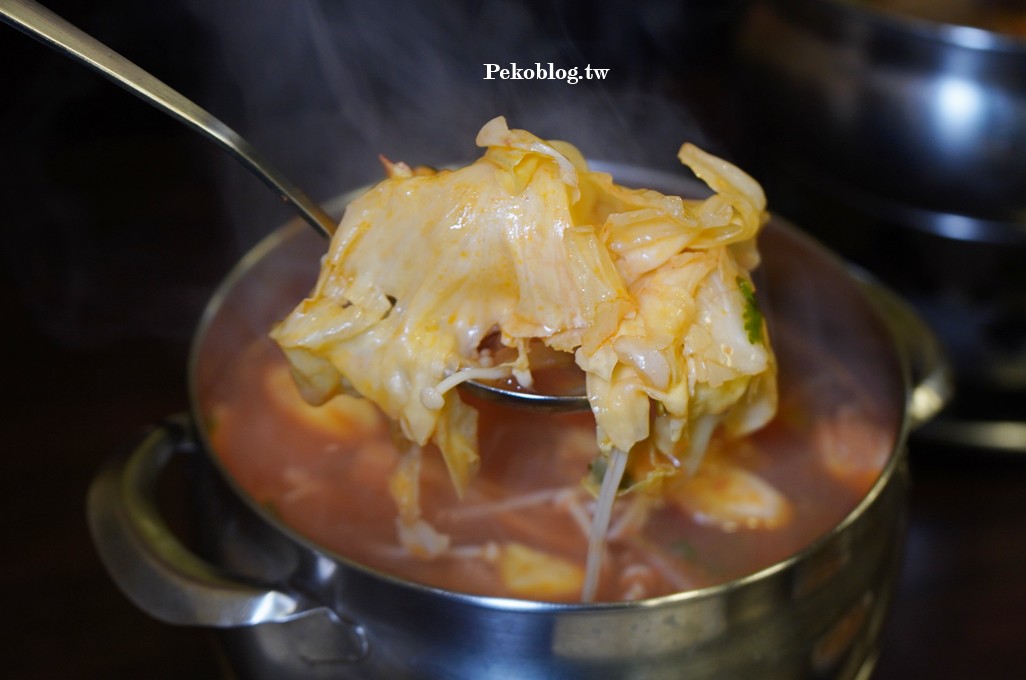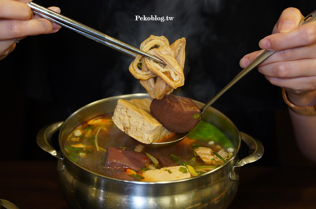 沒有一些亂七八糟的火鍋料,鍋裡僅有臭豆腐、鴨血、大腸、高麗菜跟金針菇,而且隨便撈都是料,光是臭豆腐就有3塊,鴨血更是多到PEKO懶得數,料給得很實在。