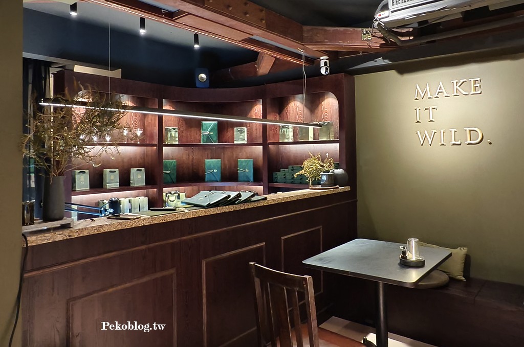 墨綠色牆面上有著“MAKE IT WILD.”的金色標語,在沉靜中注入了一絲不羈和自然的氣息,引人注目。