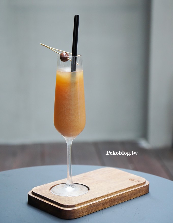 使用分子調酒技術調製,水蜜桃與奶油玉米的組合超乎想像,酸甜清爽,最特別的是,還添加了食用級的雲母粉,只要一攪動彷彿能在杯中看到宇宙中的星雲漩渦;店員也分享到這杯飲品的發想是慢溫手鍊中的星球系列。