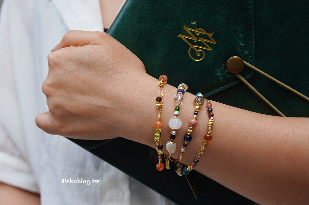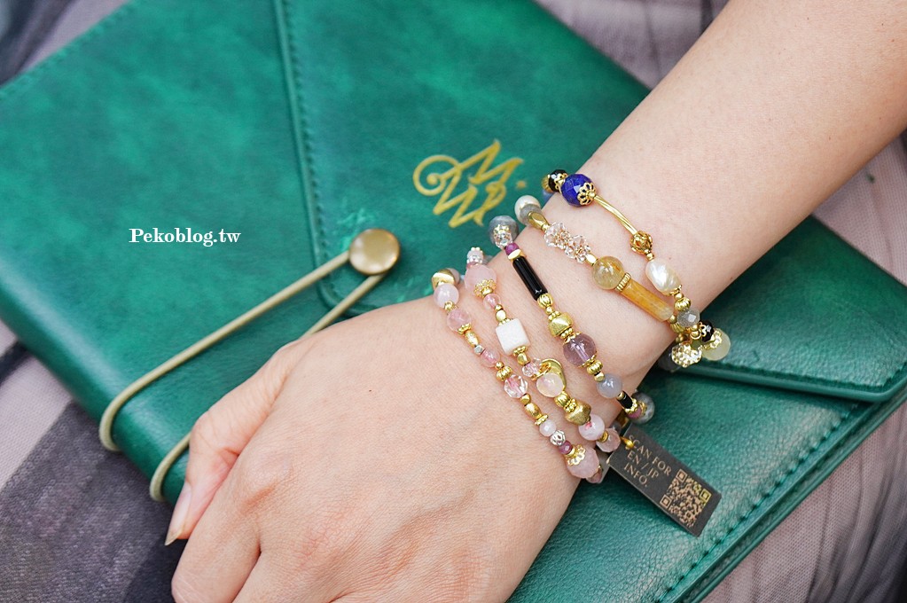 PEKO是個崇尚簡單的人,身上的飾品不多,除了最基本的手錶,就是耳環,比較特別的場合才會配戴手鍊、項鍊,對於水晶真的是門外漢,但PEKO身邊有幾位水晶礦石愛好者,多少有耳聞一些配戴水晶的優點,PEKO晃了一圈,發現這裡的水晶跟過去接觸的不同,沒有那種老氣的佛珠感,款式新穎也極具設計感,時髦又百搭,也難怪慢溫手鏈受到許多年輕顧客的推崇,10多年來在水晶手鏈飾品市場屹立不搖,還持續展店中。