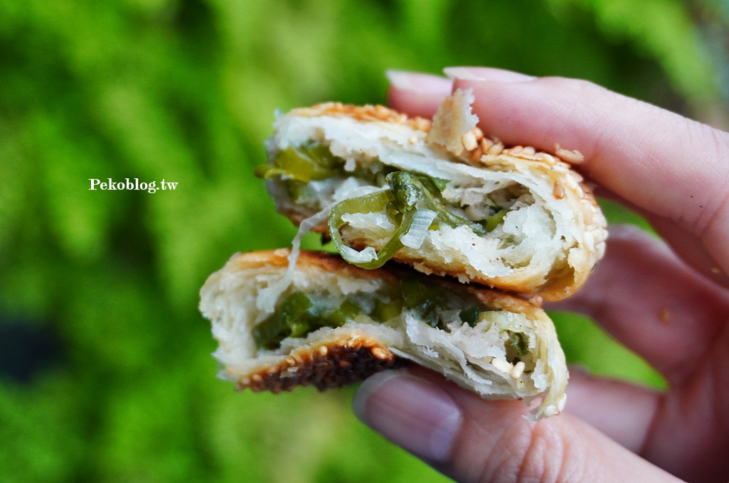 「老張炭烤燒餅」的胡椒餅用的是台灣本地的黑豬肉,雖以瘦肉為主,但卻不會過於乾澀,反而出乎意料的多汁不油膩,餅皮薄酥帶脆,肉餡胡椒味雖偏重,但微辣不刺激,PEKO超級喜歡,蔥雖少,但也因此降低了出水,減緩薄酥餅皮變軟的速度,整體表現就是一個"好"啊!