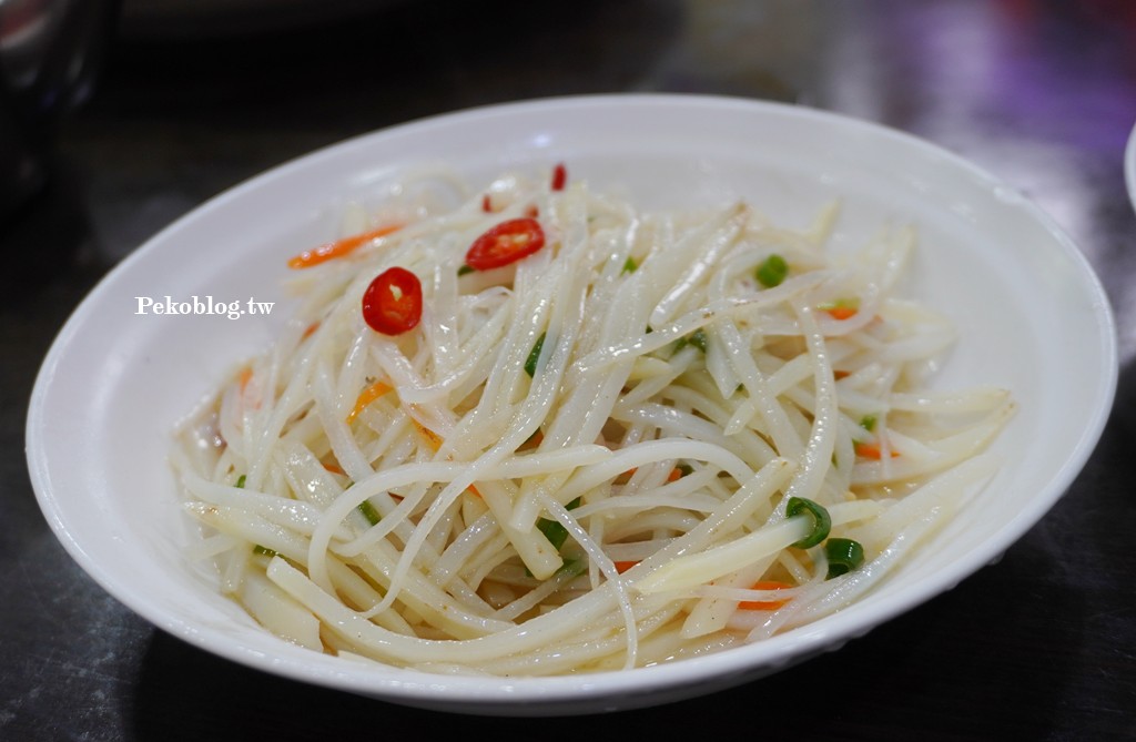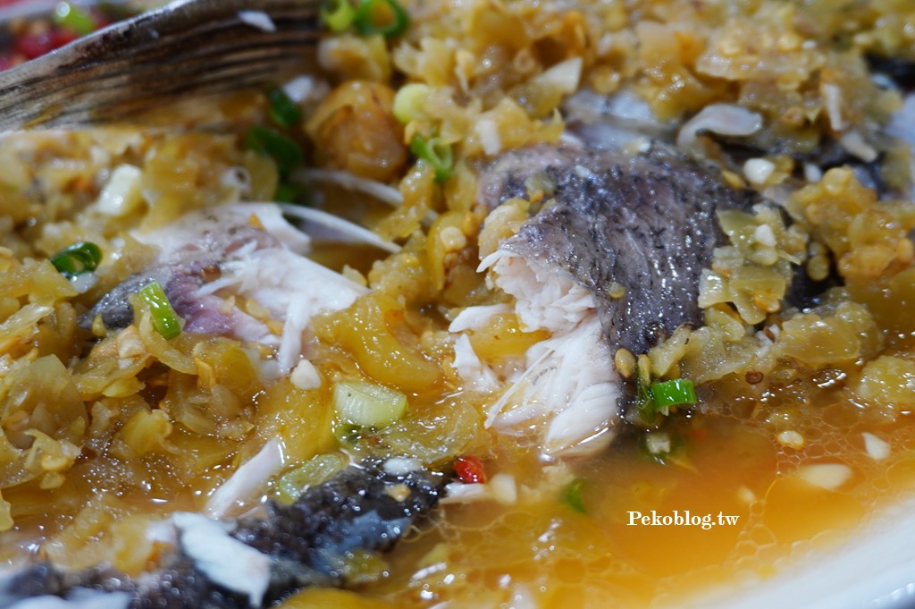 重頭戲來了!「品湘園」 選用每天現殺的鰱魚頭,搭配用高粱酒發酵3個月的手切紅剁椒、翡翠椒一起清蒸,蒸到香氣撲鼻、魚肉細緻肥嫩,沒有一絲土味,鹹辣酸鮮,一入口整個味蕾爆擊!剁椒不會太辣,可直接入口,魚眼及腮幫子肉是人間美味,沾著剁椒風味的湯汁享用,十分給力。老饕私藏吃法:把魚汁拌進清麵線,可惜PEKO沒做功課,店員也沒有告知,就這麼錯過了傳說中的神級銷魂吃法,我哭!