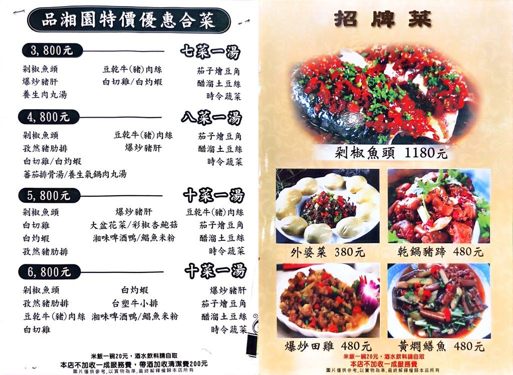 品湘園菜單