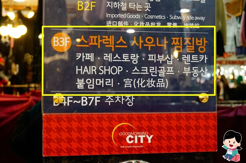 「SPAREX汗蒸幕」位於地鐵東大門歷史文化公園站14號出口一出來的「Good morning CITY」裡,旁邊就是東大門必逛的「Hello ApM」。