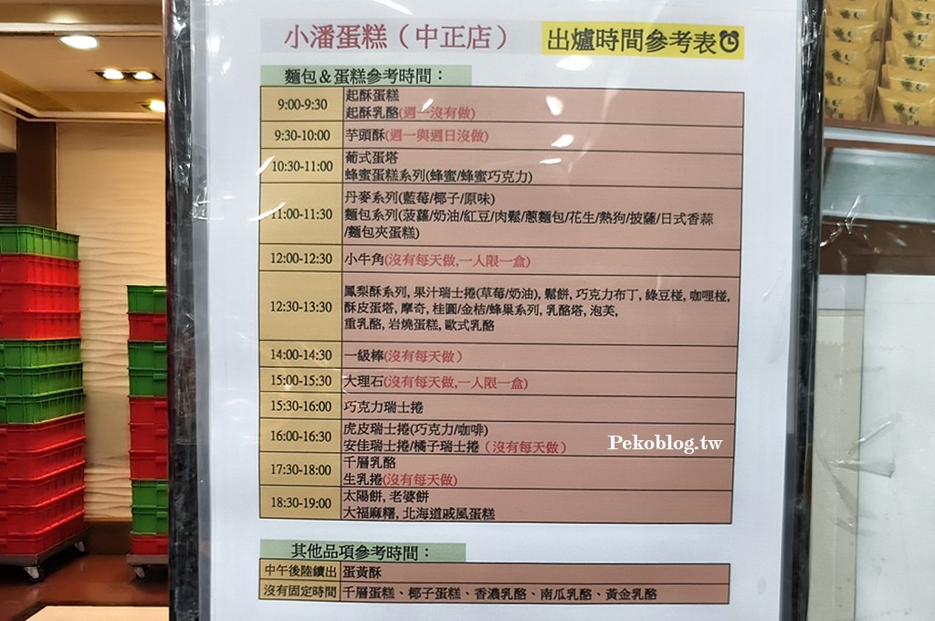 小潘各品項出爐時間