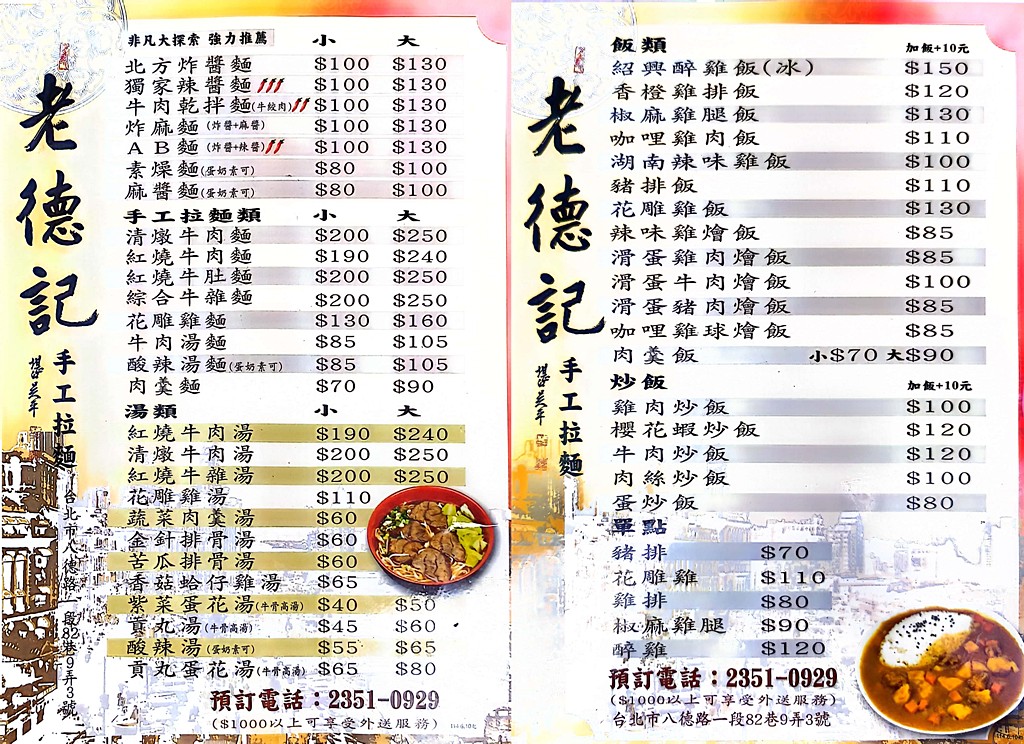 「老德記手工拉麵」的招牌是炸醬麵跟花雕雞麵,食量不大的點小碗就好,因為這裡的麵量很足,小碗就是別家的大碗份量。