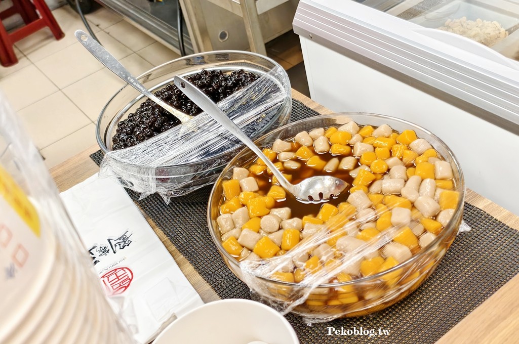 絕大多數的配料都放在冰櫃中,僅冰了會變硬的粉圓跟芋圓在檯面上,感覺對於衛生問題非常重視,加分!