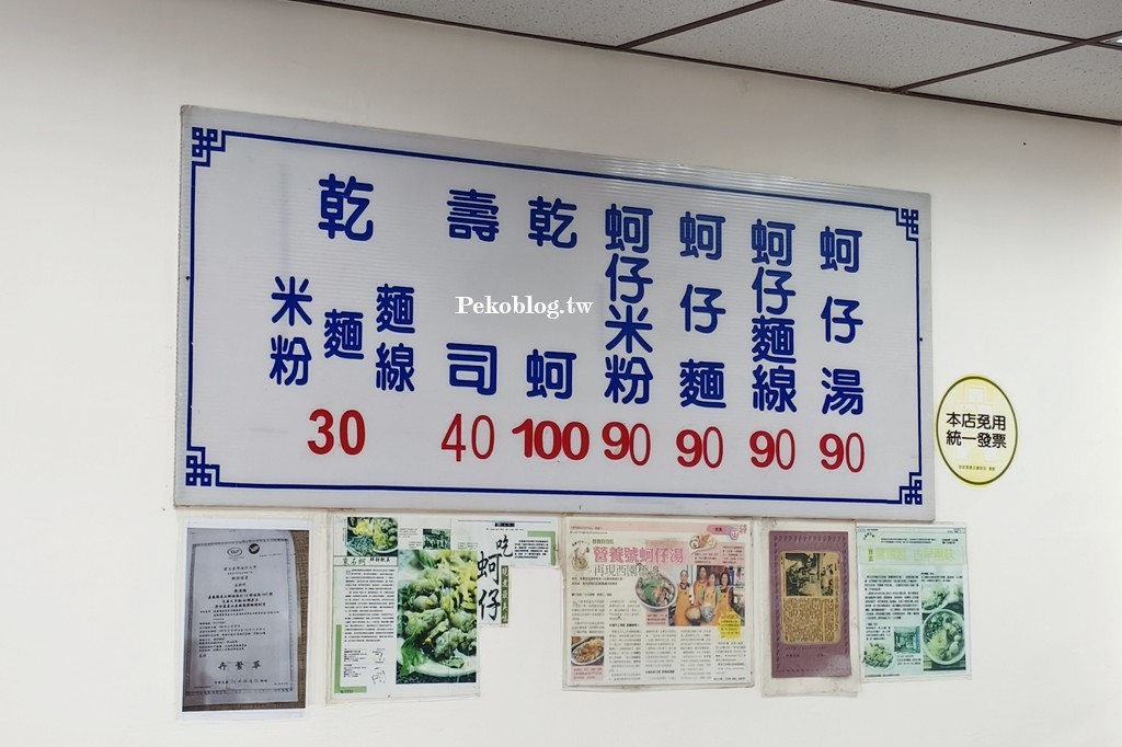PEKO看店家牆上的報導得知「營養號橋下蚵仔湯」搬遷了好多次,最後才落腳於現在西園路一段的店面。