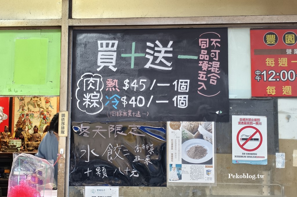 「豐園包子」位於板橋區公館街上,距離人來人往的大馬路有段距離,從捷運板橋站需步行近15分鐘,對於外地人來說不算是方便的地方,但PEKO因為很常跑兆豐銀行,所以吃過蠻多次「豐園包子」,但每次都沒買到韓式泡菜鮮肉包,文章也就一直壓在後台,韓式泡菜鮮肉包一周只出1~2天,想買最好先打電話問。