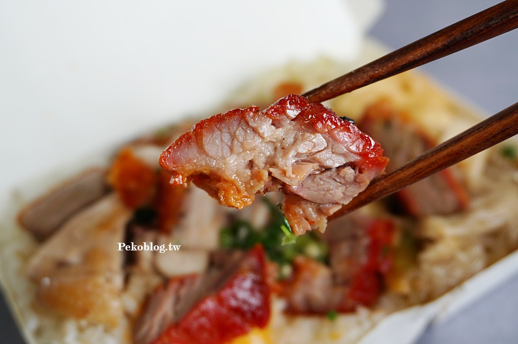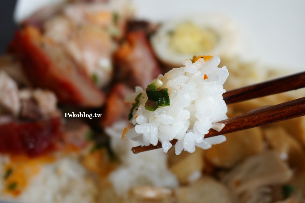 這次PEKO點了「陳記招牌飯」,特別把香腸換成了我最愛的化皮燒肉。一盒便當滿到炸開,肉量堆好堆滿,難怪網友說吃完會飽到撐!