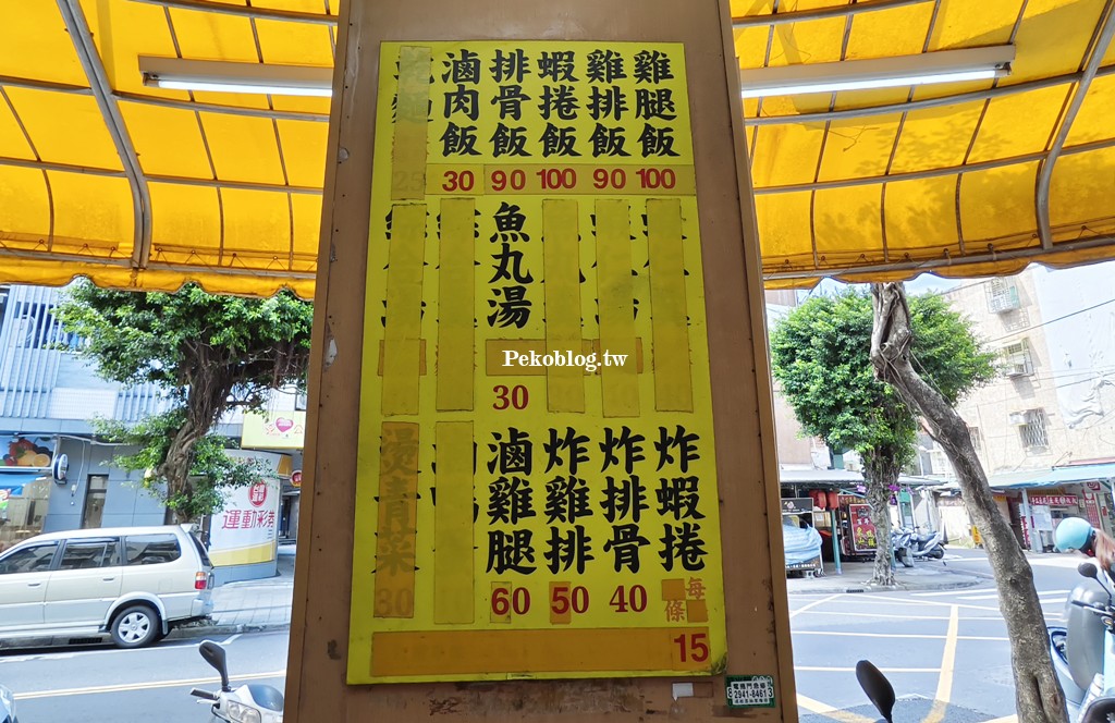 菜單品項有雞腿飯、雞排飯、排骨飯、蝦捲飯、滷肉飯等多款主食可選擇,還能單點炸物與魚丸湯。(拍攝日期為2025.05)