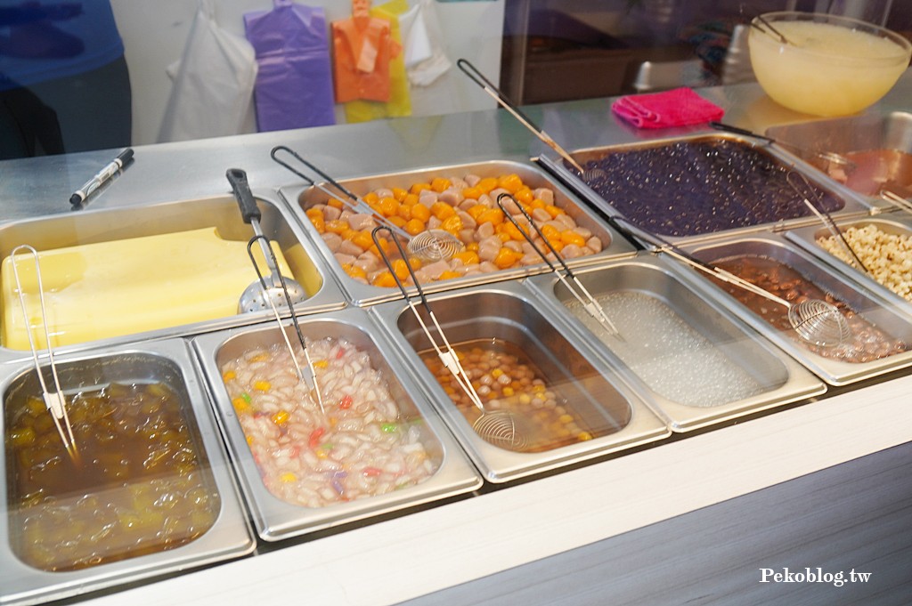 每天提供15種左右的配料,而配料區必點的就是「友蓁豆花」的純手工芋圓、地瓜圓,大顆飽滿,看起來就一副好吃樣。