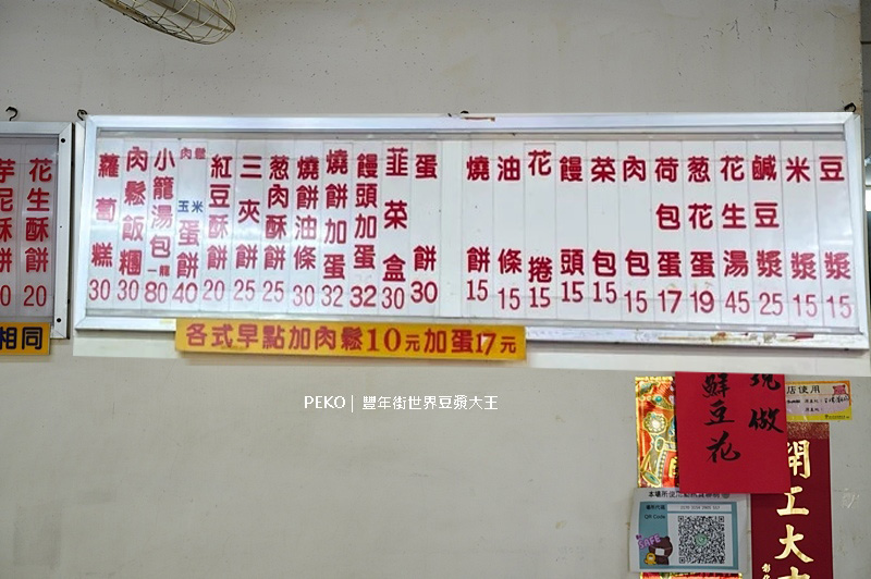 豐年街世界豆漿大王菜單