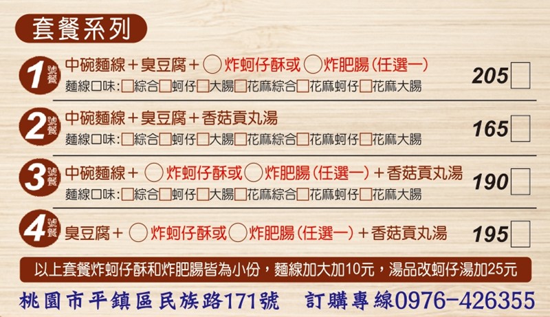 點餐的時候可以仔細算一下,如果點兩款以上,建議從套餐下手,會比較划算,麵線加大+10元、湯品改蚵仔湯+25元。