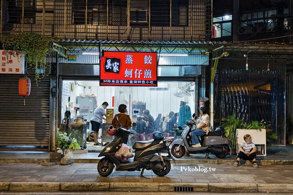 「吳家蒸餃」早期有賣蚵仔煎,但目前已停售,現在只有賣蒸餃、小籠湯包、燒賣跟湯品,蒸餃口味非常的多,有玉米、韭菜、絲瓜、香菜、高麗菜以及蝦仁鮮肉等,其中又以絲瓜蒸餃與香菜蒸餃最為特別。