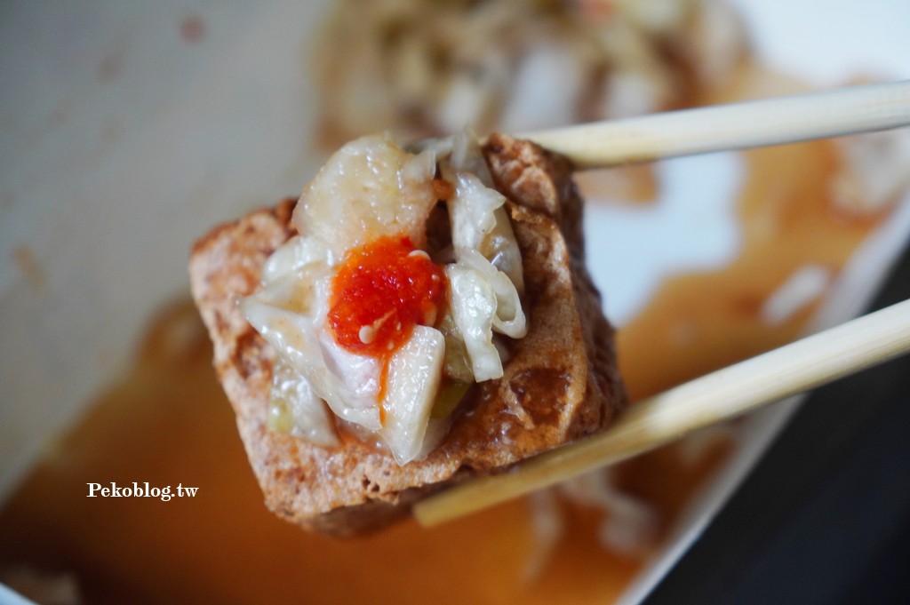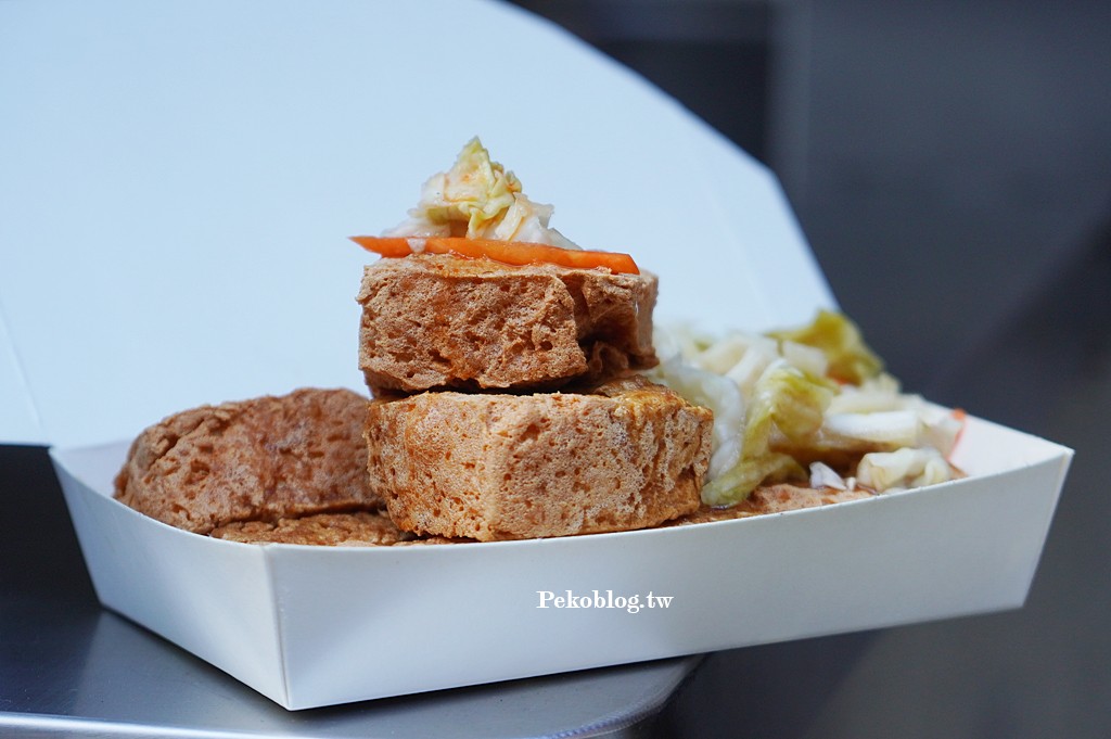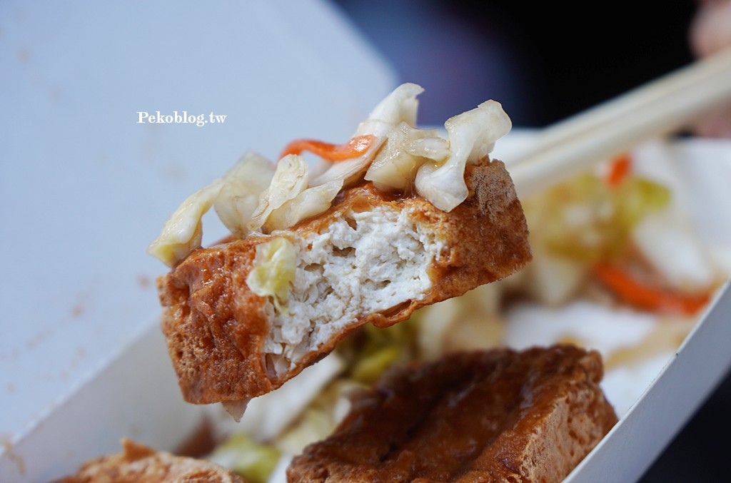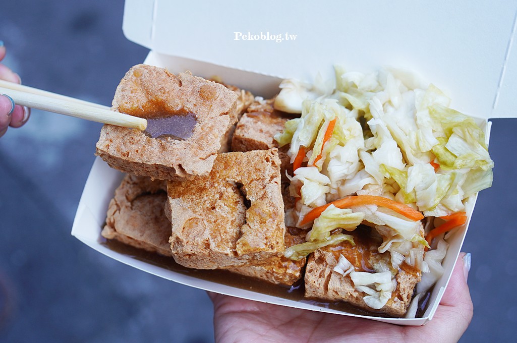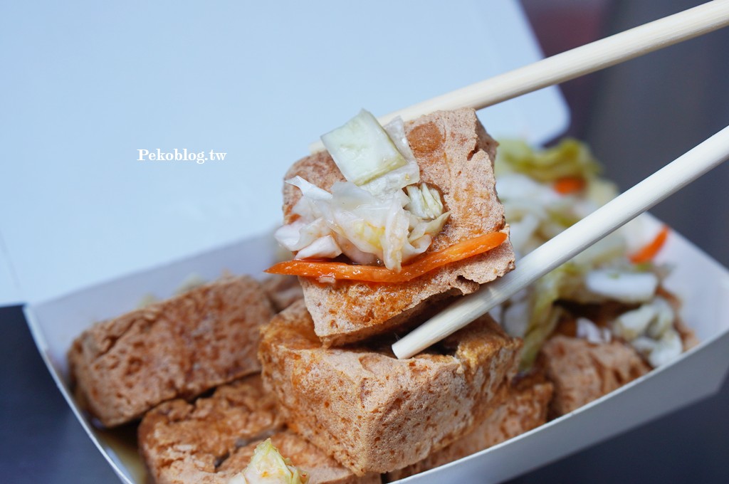 這天因為老闆比較晚開攤,PEKO跟朋友在旁邊等了一下,所以老闆多請了我們兩塊,讓我們的臭豆腐比別人還多。