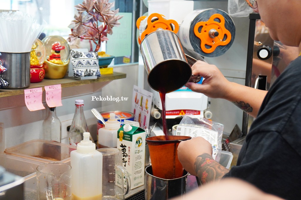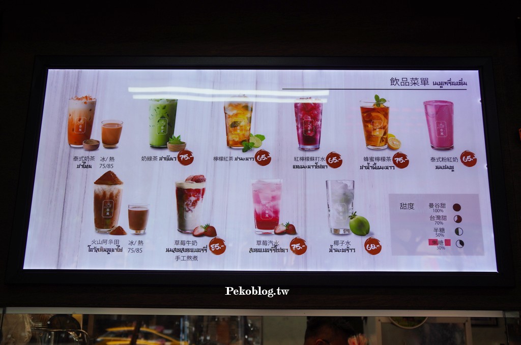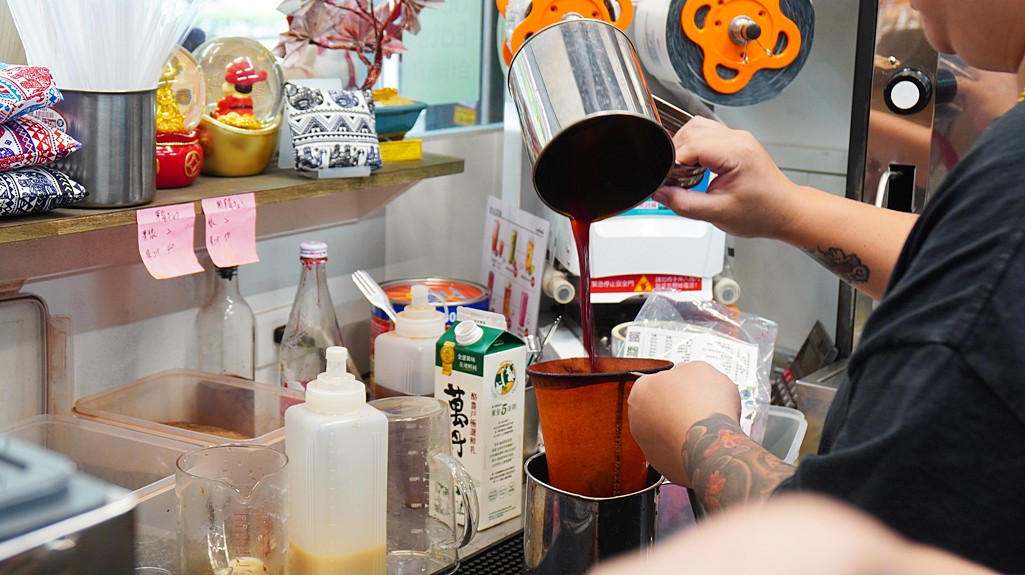 「泰萬」主打泰式奶茶,而且都是現沖現泡的,甜度從曼谷甜、台灣甜、半糖到無糖都有,製作過程都看的到,自備環保杯還可以省5元。(限時79折優惠)