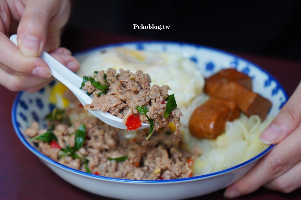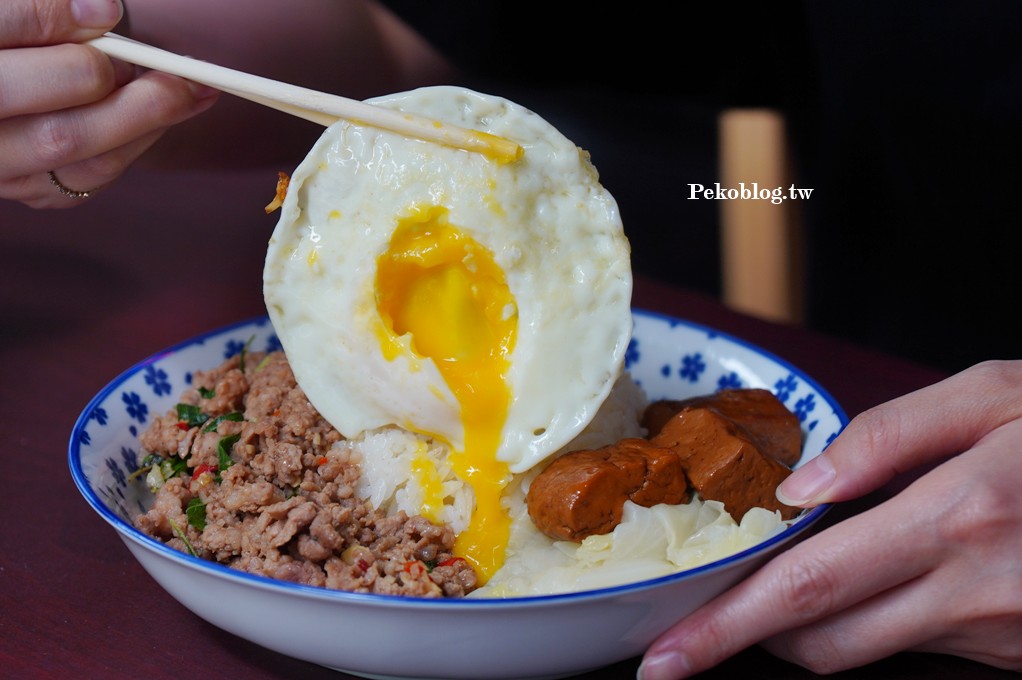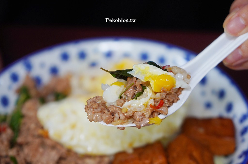 本來想點「泰萬」的船麵,但又覺得好久沒吃打拋豬,有點想念,所以最後還是點了打拋豬肉飯,辣度可客製化,有小辣、中辣、大辣跟超級辣 (魔鬼辣),PEKO點了中辣,辣度有感,打拋豬鹹香夠味,真的有泰味,不是台式的九層塔炒絞肉。