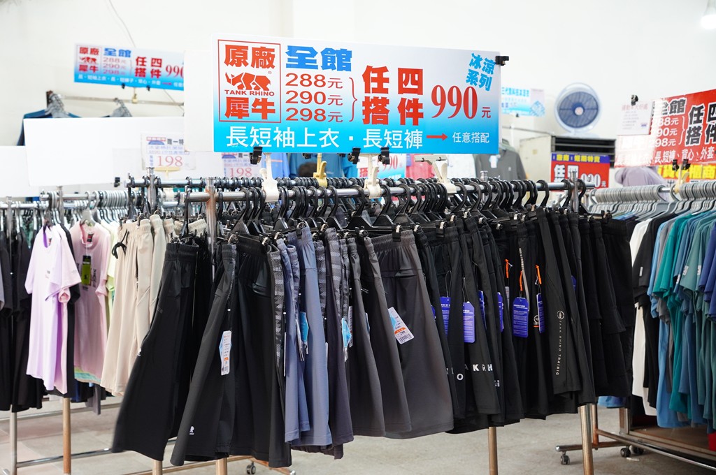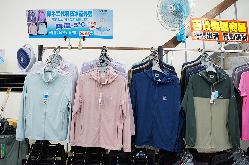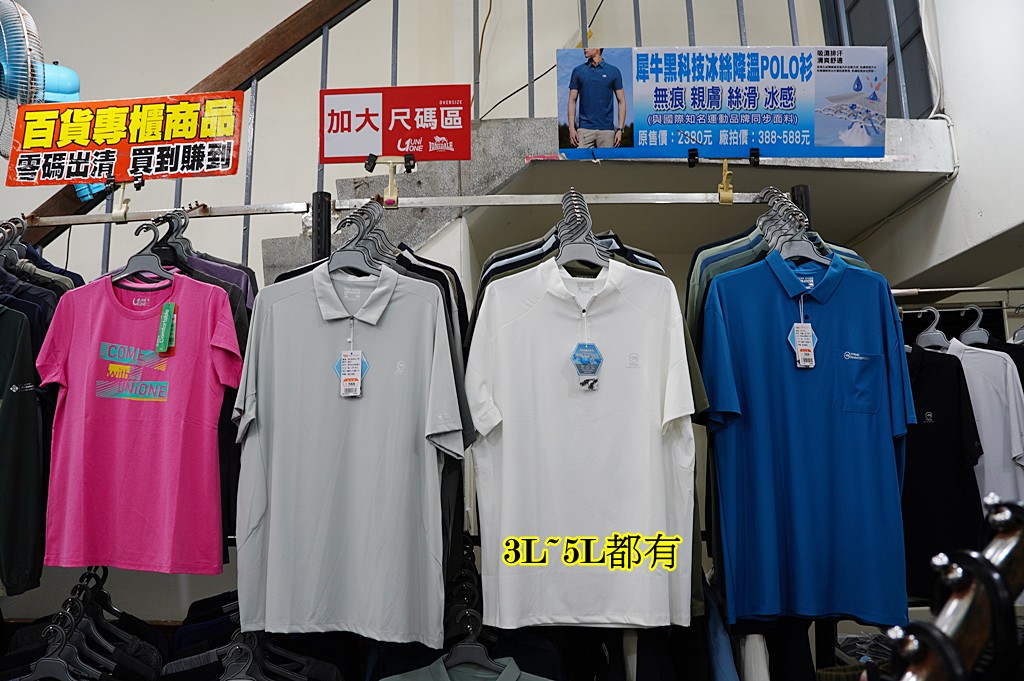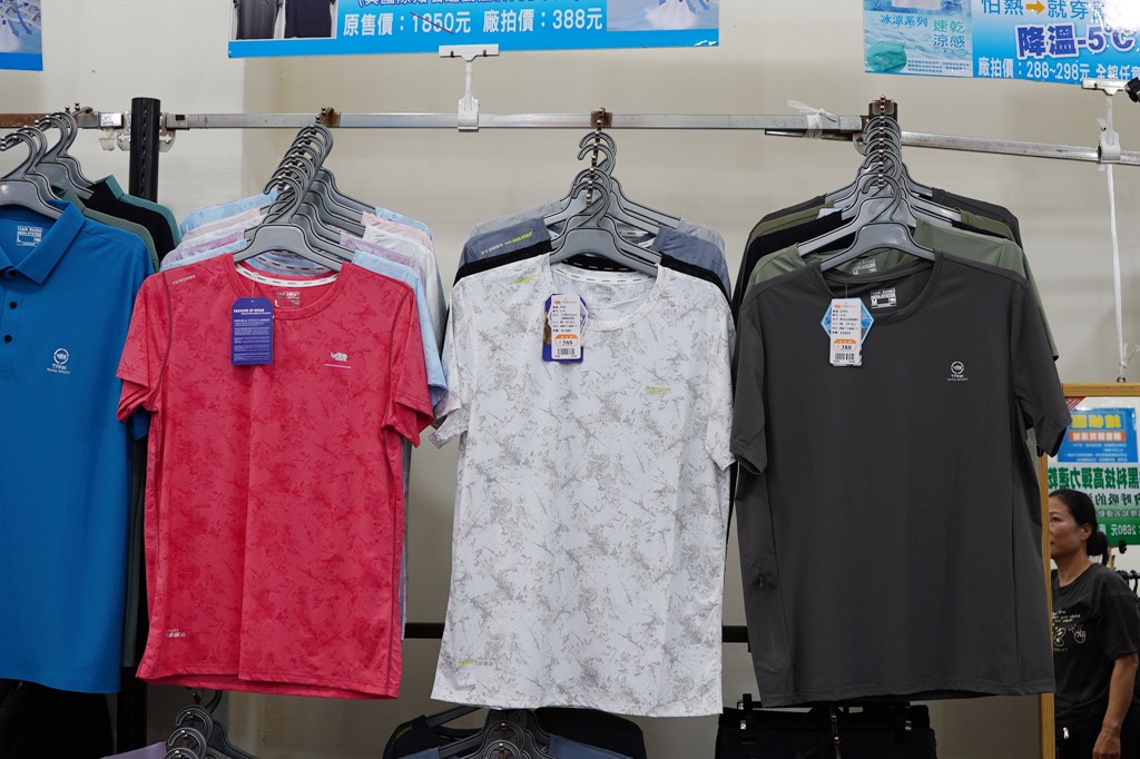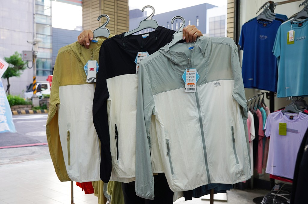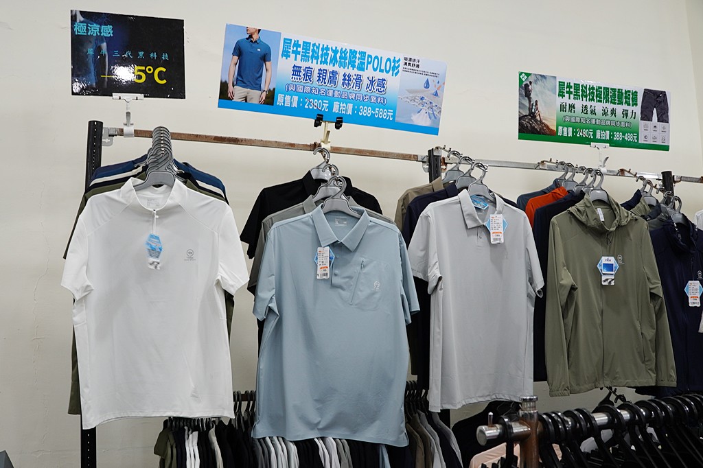 空間寬敞明亮,冰涼衣、冰涼褲、冰涼外套排列整齊,一目了然,款式多、尺寸齊全,找不到尺碼也都能問店員。