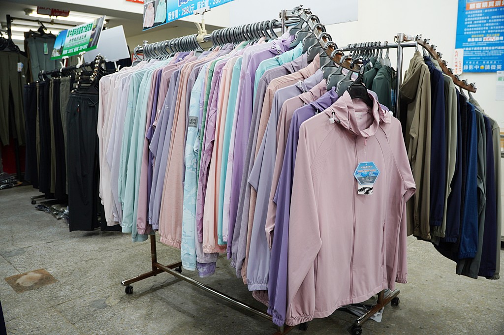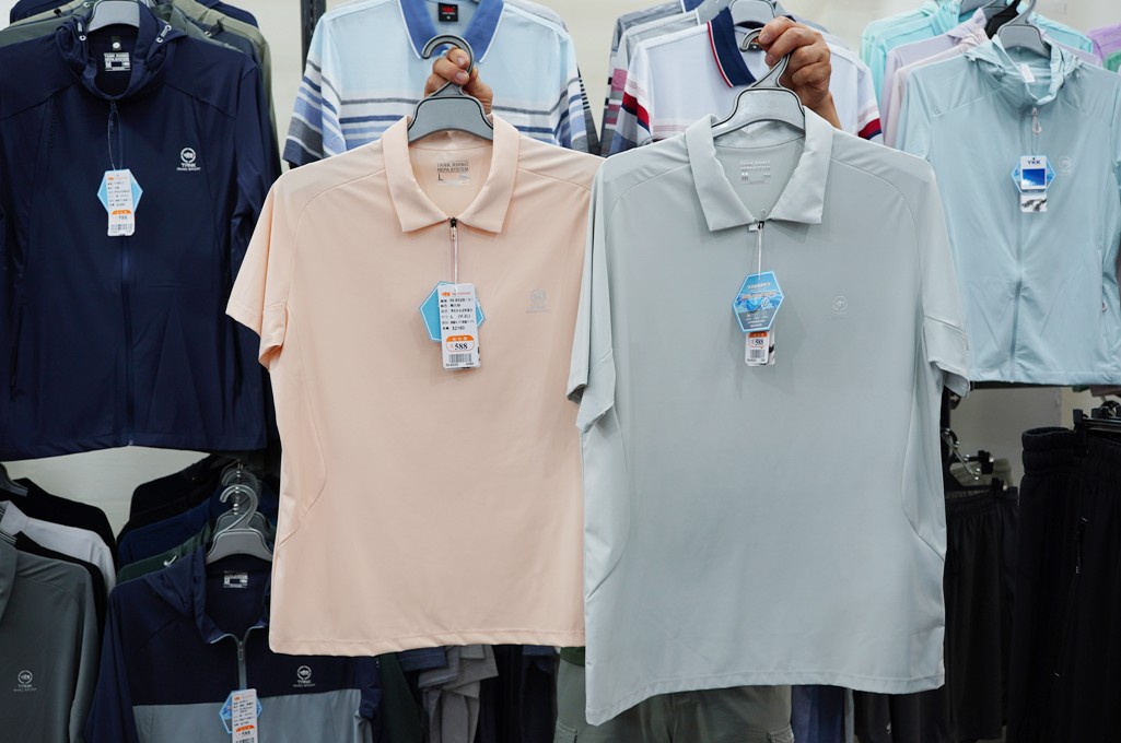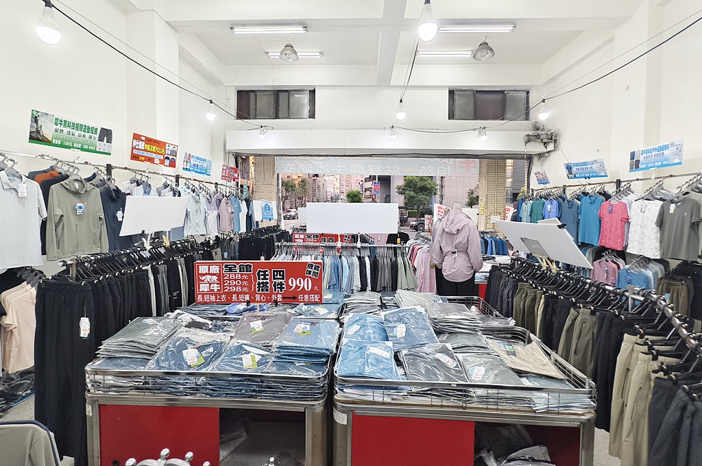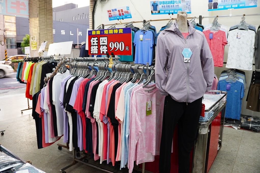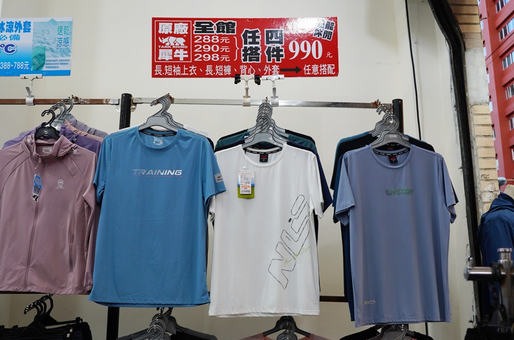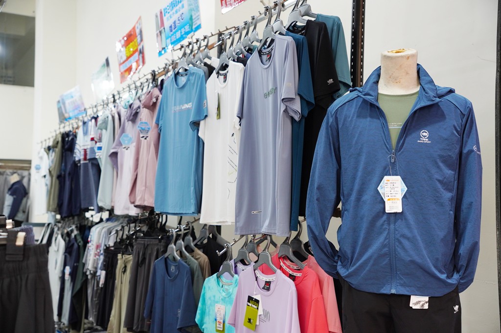 空間寬敞明亮,冰涼衣、冰涼褲、冰涼外套排列整齊,一目了然,款式多、尺寸齊全,找不到尺碼也都能問店員。
