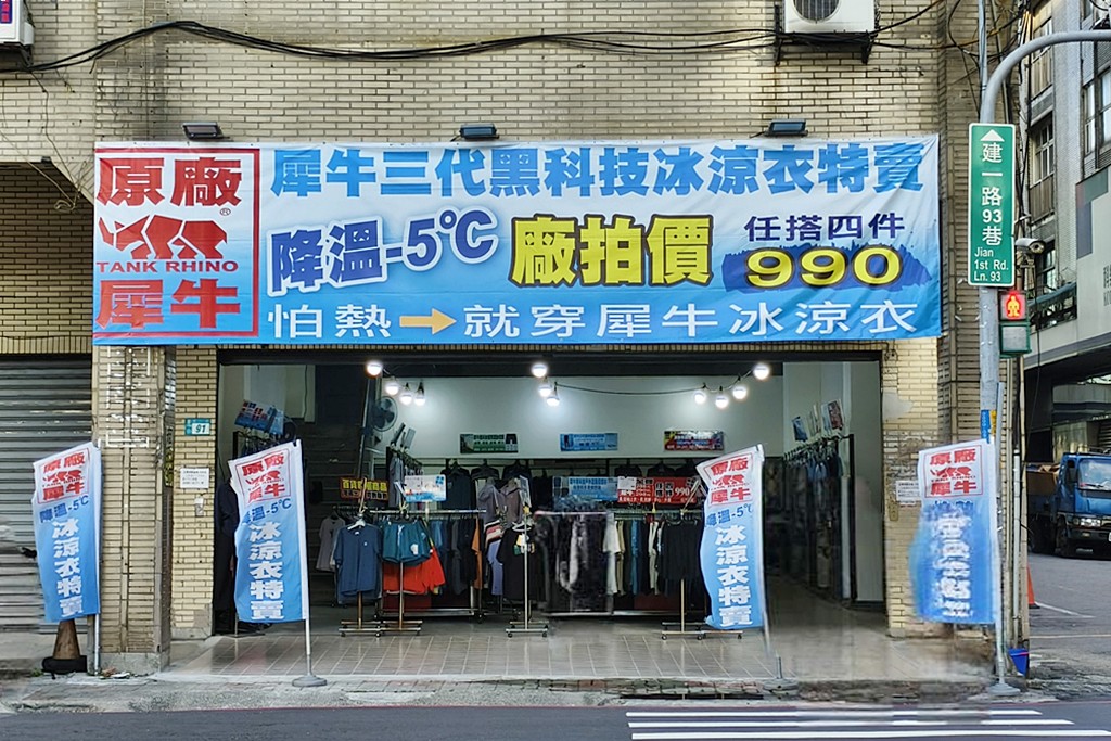 《原廠犀牛黑科技冰涼衣特賣》就在新北市中和區建一路91號(建六路口、特斯拉汽車對面),全館98元起,冰涼衣褲任搭四件990元!,穿上有感降溫,想要過個涼爽的夏天,就穿冰涼衣,要搶要快,只到9月中哦!